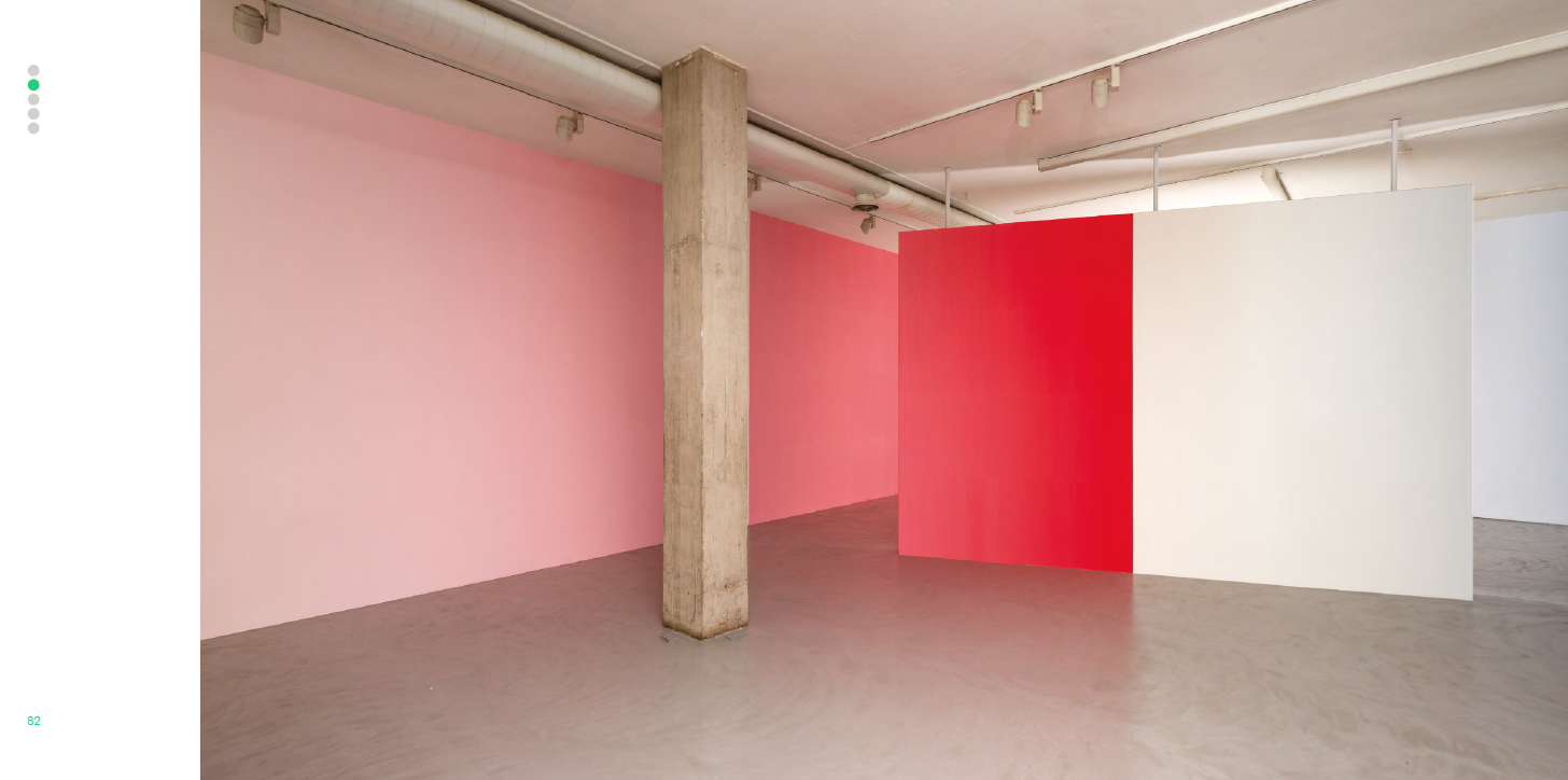 La técnica que utiliza el artista consigue cambiar la perspectiva y transformar la arquitectura del lugar. El público se adentra en la pintura que envuelve al navegante a través de sus degradados. Aquí, la luz y la pintura modifican la percepción del entorno creando un espacio de cero grados construido únicamente por el color. El resultado es una sensación de extrañamiento constante al observar las paredes de color, pues la perspectiva se difumina y uno no sabe dónde acaba una pared y empieza la otra. El efecto visual distorsiona la percepción volumétrica que ahora se produce por el color.